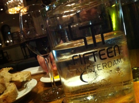 Enfin presque… Jamie Oliver n’est pas vraiment dans les cuisines du Fifteen d’Amsterdam mais il est sans aucun doute dans les assiettes ! Je ne sais pas s’il met les pieds de temps à autres là-bas, mais la cuisine qu’on y pratique est vraiment inspirée de la sienne. Loin d’être légère pour ce qu’on a goûté mais super bonne, de saison et bio.