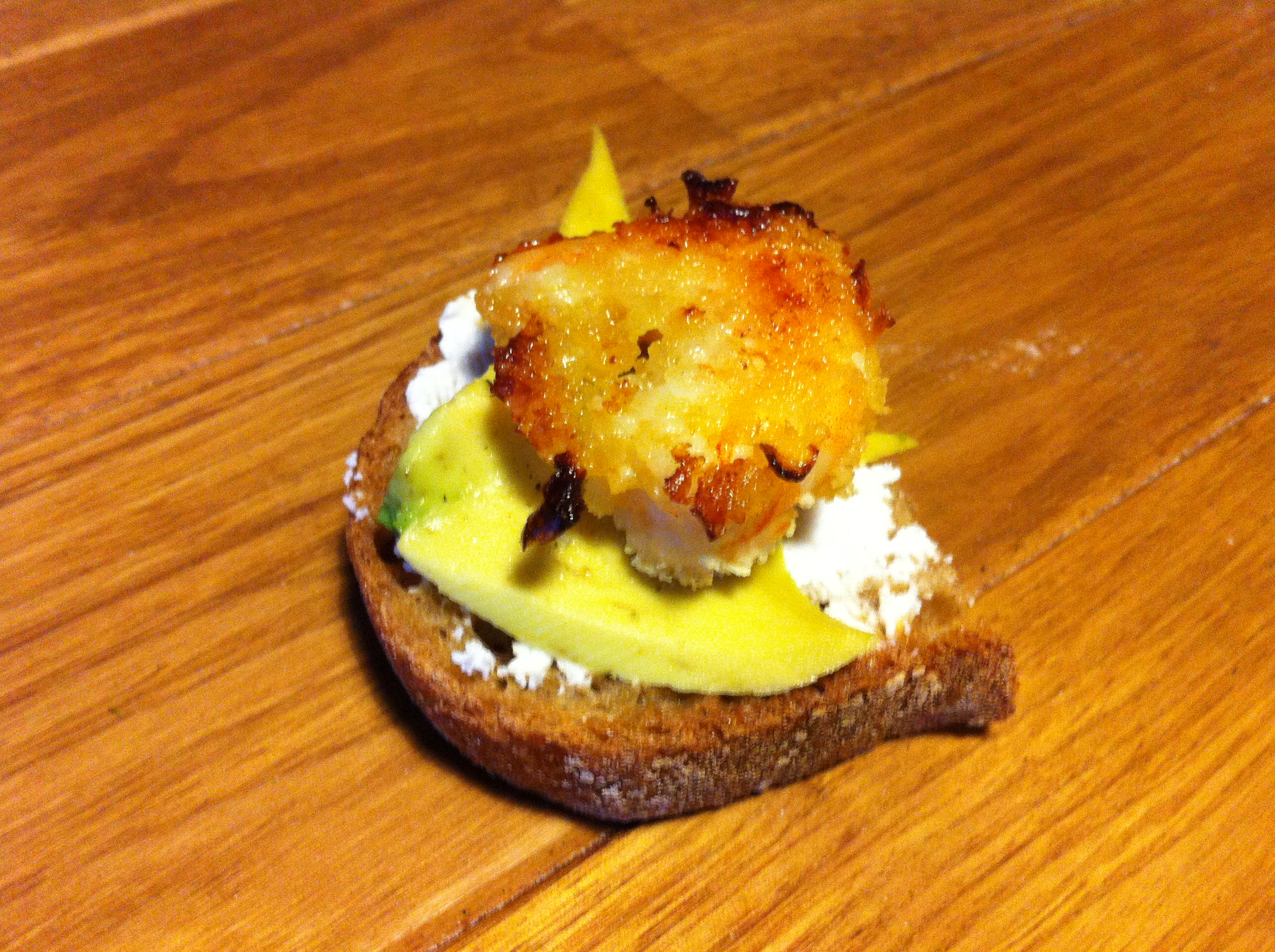 La photo moche du dimanche mais alors miam-miam. Les crevettes panées. L’avocat. Le chèvre frais.
