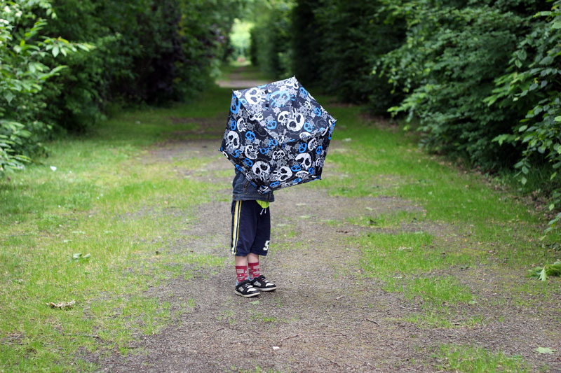 On n’est pas sur un blog mode mais franchement Rigolus a un tel goût pour se vêtir ! Et ce parapluie vintage est si classe, hein ?